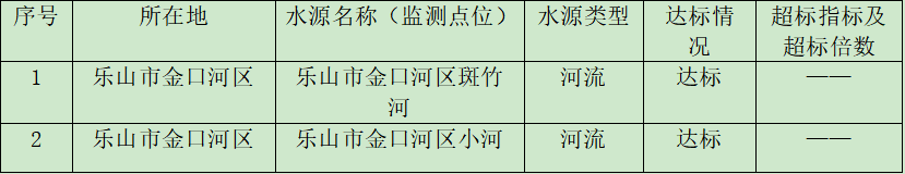 乐山市金口河生态环境局委托四川省乐山生态环境监测中心站对乐山市金口河区2025年第四季度城区集中式生活饮用水水源地—斑竹河、小河饮用水源2个地表水水源地水质现状进行了监测,2个水源地均属河流型水源地。