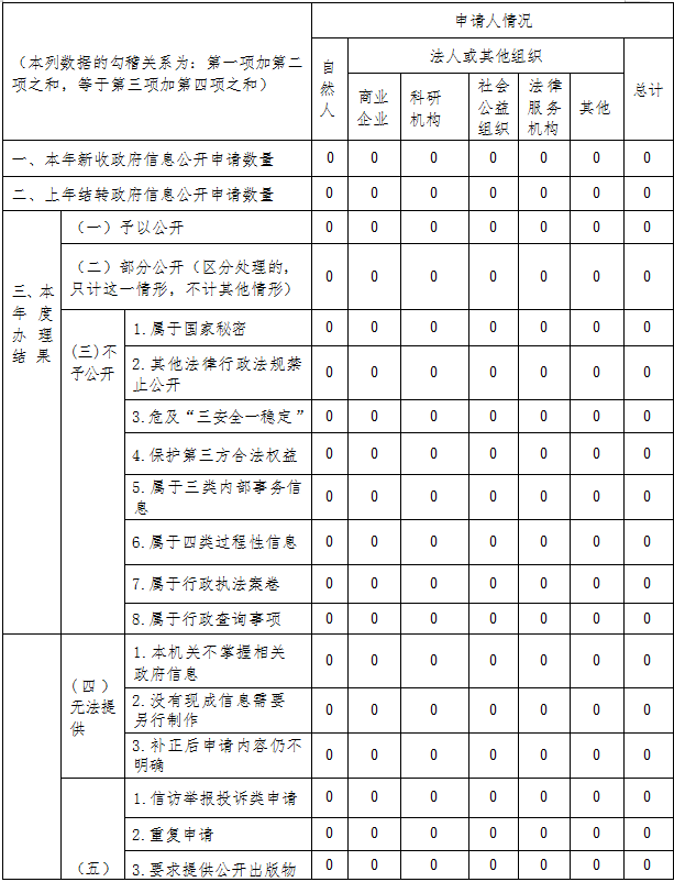 2025年我局无依申请公开事项,未收到申请公开政府信息的申请。