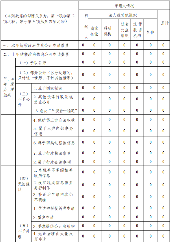 三、收到和处理政府信息公开申请情况