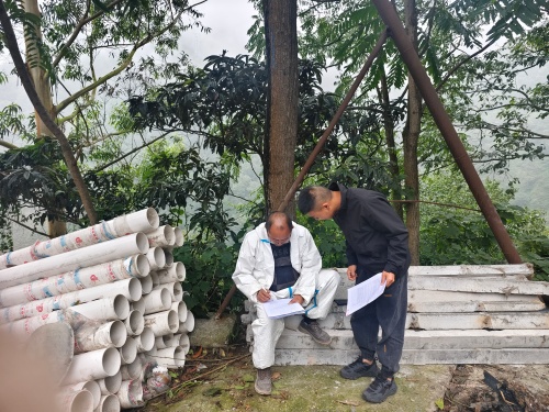 10月20日,乡村两级干部协同国能公司、设计公司对群众反映未征土地被水淹的问题进行现场核实。