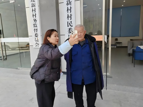 1月12日,迎新村、解放村村“两委”干部为村民进行养老资格认证。