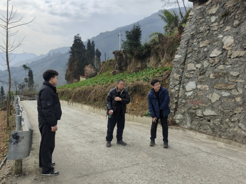 1月14日,乡党委书记付文广,乡党委副书记、乡长居虎到迎春村调研产业路发展情况。
