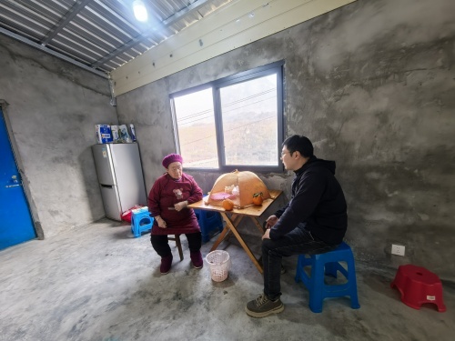 1月26日,乡党委委员、武装部长、副乡长阿军到解放村入户宣传征拆政策。