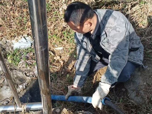 2月25日,桠溪村村“两委”干部组织群众开展安置点污水设备清理维护。