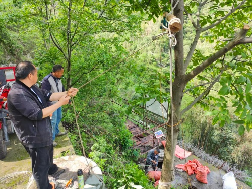 4月23日,蒲梯村村“两委”干部组织群众到蒲梯村五组开展污水池清淤工作,并告知安全注意事项。