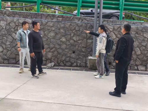 4月21日,乡村两级干部到解放村对1号安置点边坡治理项目开展初验工作。