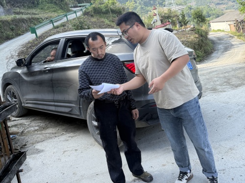 4月24日,蒲梯村村“两委”干部入户发放社会救助政策清单,并宣讲相关政策。