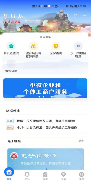 步骤一:各大应用市场下载“天府通办”,乐山用户自动定位至“乐山子站”