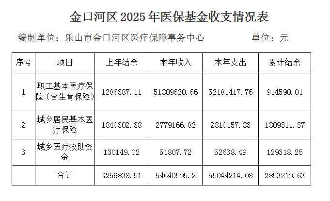 金口河区2025年医保基金收支情况公示