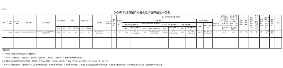 金口河区2026年四川省尾矿库安全生产包保情况一览表