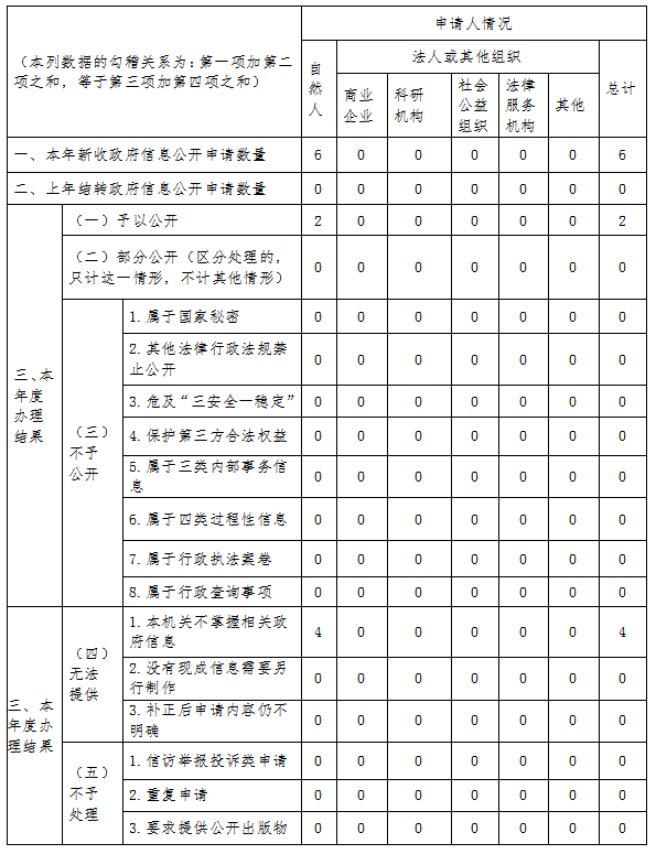 三、收到和处理政府信息公开申请情况