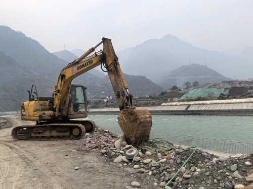 12月26日,解放村、蒲梯村对大渡河沿岸建设工地垃圾进行清理。
