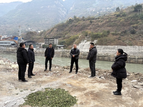12月25日,乡党委书记付文广,乡党委副书记、乡长居虎带队到蒲梯村指导大渡河沿岸路段环境整治工作。