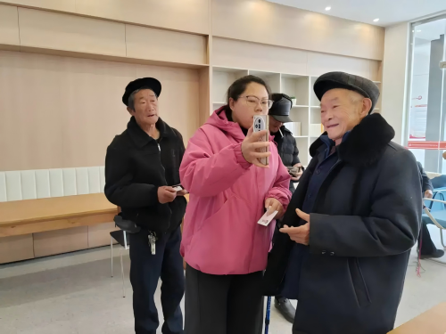 1月12日,迎新村、解放村村“两委”干部为村民进行养老资格认证。