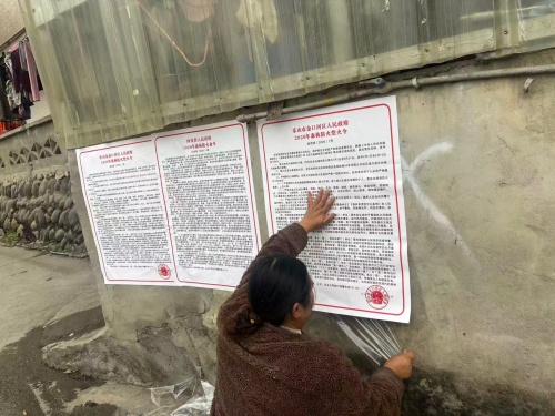 1月15日,迎春村村“两委”干部张贴森林防火禁火令。