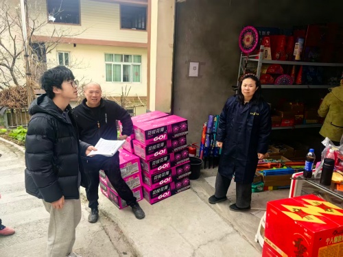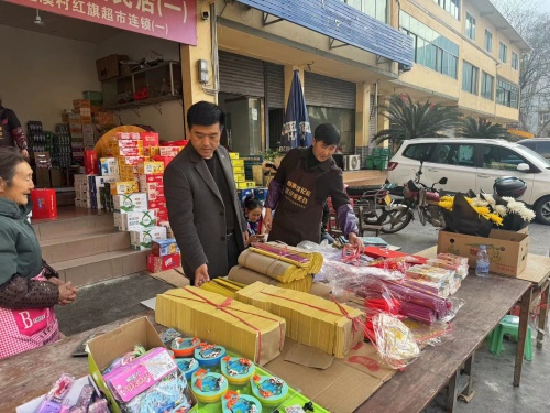 2月19日,乡村两级干部开展食品安全排查及烟花爆竹违规销售情况排查。